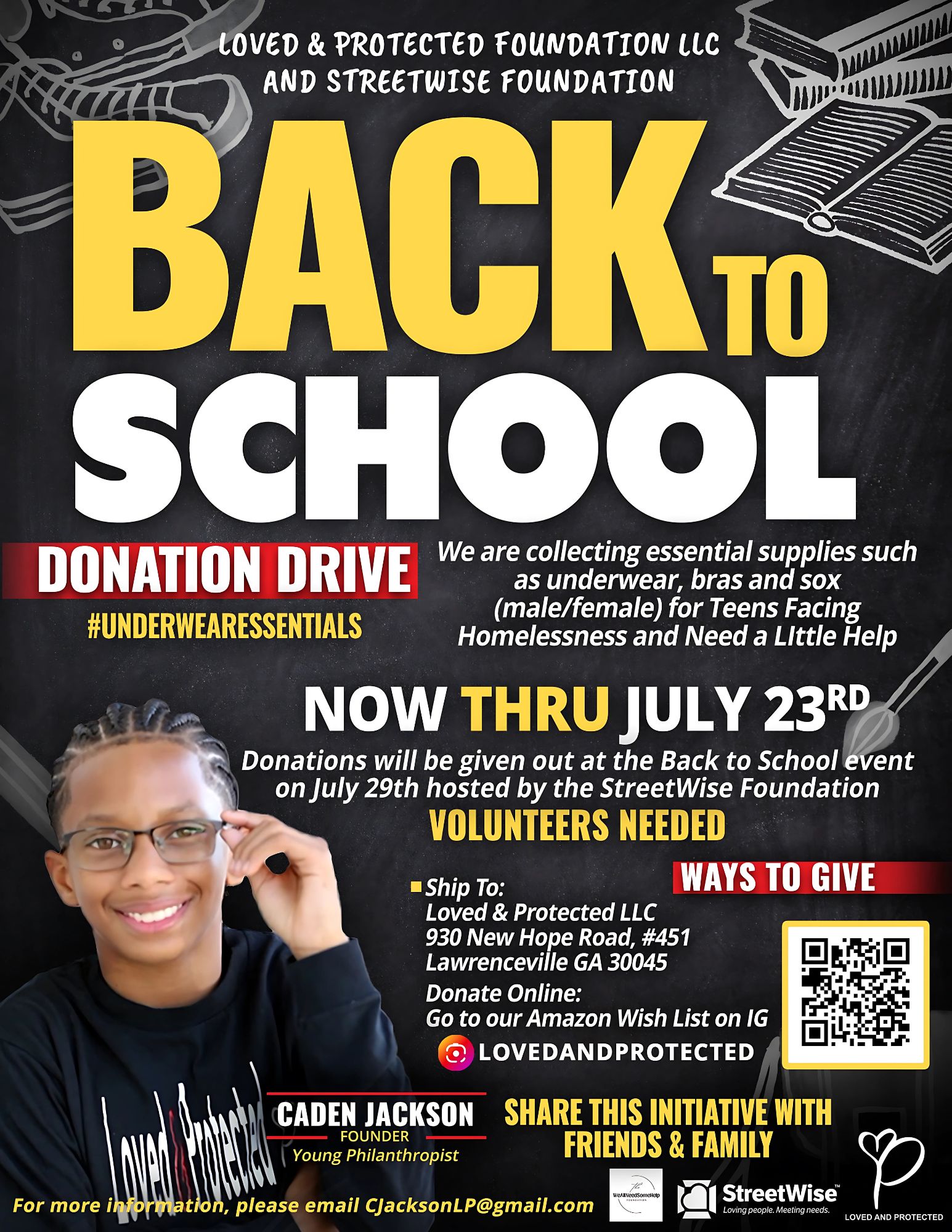 Help us as we kick off this year's Donation Drive, to begins on September 20th and runs through November 30th. All items will be collected in time for winter break giveback!